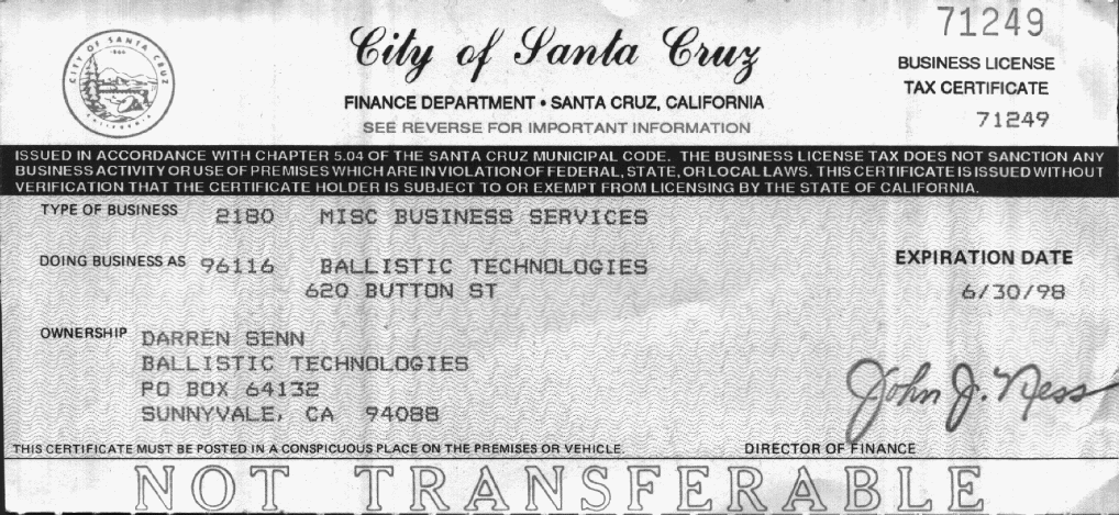 - Business license: